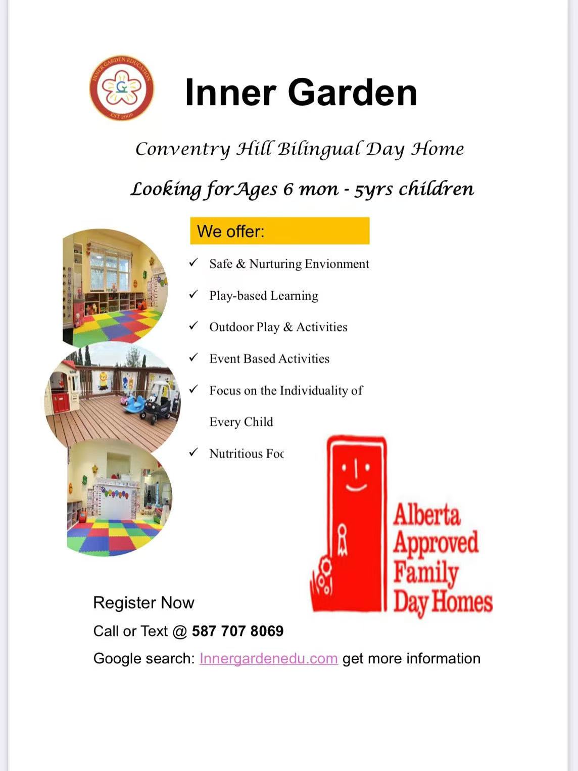 📍Coventry Hill园有少量名额 环境温馨,设施齐全,现面向6个月-5岁儿童开放报名! 我们为宝贝们提供: ✅ 政府补贴 ✅ 健康营养的餐食 ✅ 中英文双语教学 ✅ 丰富有趣的课程安排 ✅ 温馨、安全的学习与成长环境 🌟 让孩子在爱与陪伴中快乐成长!🌟 📞 报名咨询:Call or Text 587-707-8069 💬 微信:Linda200228