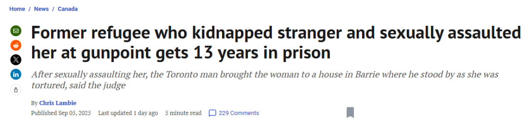 据National Post报道,一名曾经的难民、现为加拿大永久居民的男子Keyron Moore,因参与旺市一宗持枪绑架及性侵案,被安省法院判处13年监禁。在该案中,受害者为一名华人女子。 ![]() ![]() 图源:Global News 法庭文件显示,2022年11月1日晚11点左右,一名女子在多伦多北面的Thornhill(100 Steeles Avenue West)一家餐厅外被一名男子持枪强行塞进一辆灰色Kia Soul越野车。 Moore当时是司机,但在途中他曾转到后排,用手枪顶住受害人头部,强迫她进行性行为。 绑架过程中,另一名同伙(法庭称其为“橙色连帽衫男子”)向一名试图施救的无辜路人(韩裔)开枪,但并未击中。该同伙至今仍未落网。法官表示,Moore明知会发生什么,还持枪参与,因此要为枪击事件承担同样责任。 受害人(法院代号 A.T.,30岁出头)被绑架后,双手和嘴巴一度被胶带捆住,随后被带到巴里(Barrie)一处住所。她在车内曾听到Moore打电话,提到要用20,000加元“赎放”她。 在巴里,这名女子遭到残忍虐待: • 被脱光衣服绑在车库的椅子上; • 双手双脚被锤子砸伤,双腿被击打; • 头发被烧; • 手臂上被人用针管反复抽拉,疑似沾有海洛因。 法院文件还提到,Moore在场时要么袖手旁观,要么走出车库抽烟,从未试图阻止或帮助受害人。 绑匪们反复要求受害人“打电话要钱”,还说她是华人,开保时捷,一定有钱,甚至索要高达$100万加密货币。不过,他们并没有真正让她打过电话。 这名女子被囚禁将近12小时,最终设法逃脱。约克区警方后来在巴里Janine Street与Cundles Road East附近找到她。 ![]() 图源:法庭文件 受害人告诉法庭,她至今仍受严重心理创伤: • 经常耳鸣,脑海中反复出现当时的枪声和被枪托击打的声音; • 不敢独自外出,总觉得“背上有靶子”; • 夜晚看到车灯就会惊恐,感觉随时可能再次被绑走; • 即使在家中也缺乏安全感,常常幻想有人闯门或翻上阳台。 法官在判决书中写道,她所经历的是“极其恐怖、痛苦和毁灭性的”。 Moore 现年39岁,来自格林纳达,20岁来到加拿大。2008或2009年时,他以“逃避帮派暴力”为由获得难民身份。庭审中提到,他有三个孩子,曾与母亲和女儿一起住在北约克,靠送货和临时工维持生计。 尽管有支持信证明他与孩子们关系良好,但法官最终裁定,Moore必须为自己的罪行付出沉重代价。 编辑(Edit)     删除(Delete) |