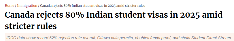 今年上半年,加拿大发放的留学许可数量大幅下降,比去年同期少了将近9万份。 ![]() ![]() 图源:iStock 这一情况出现在联邦政府自2024年初开始,对国际留学生签证设置总量上限之后。 2024年1月至6月:加拿大共发放 125,034份学签。 2025年同期:仅发放 36,417份。(加拿大移民部(IRCC)在9月3日对 CBC 新闻确认了这一数据) 不仅发放量锐减,申请量也明显下滑: 2023年上半年:575,535 份申请 2024年上半年:398,675 份申请 2025年上半年:302,795 份申请 移民部长发言人 Laura Blondeau 表示,这一趋势说明政府采取的限制措施“正在发挥作用”。她强调,加拿大仍然会“重点吸引全球顶尖人才,推动经济发展”,并会与各省、指定院校及教育机构继续合作,寻求国际留学的可持续发展道路。 拒签率达到10年来最高水平 80%印度学生遭拒签 此外,移民部的最新数据显示,2025年学生签证申请被拒率为62%,高于去年的52%,远高于前几年40%的平均水平。 ![]() ![]() 图源:PIE & IRCC IRCC的记录显示,拒签率目前已达到十年来的最高水平。报告显示,印度申请者首当其冲,高达80%的申请被拒。虽然各国的具体数据尚未公布,但教育媒体Pie News报道称,拒签率的大幅上升预示着其将对亚洲、非洲及其他地区产生连锁反应。 过去十年,由于加拿大高等教育经费下降、部分省份冻结本地学费,许多高校把目光转向海外,大力招收留学生,依赖高出本地几倍的国际学费来维持运转。 ![]() 不过,2023年底开始,联邦政府陆续收紧对留学生的要求;2024年宣布未来两年本科留学许可将削减35%。几个月后,削减比例又扩大到45%,并首次涵盖研究生和博士生。同时,毕业工签(PGWP)的申请条件也被收紧。 加拿大各地的高校纷纷表示,这一政策严重冲击了他们的财政状况、课程安排以及周边社区的发展。 来源:加国无忧 编辑(Edit)     删除(Delete) |