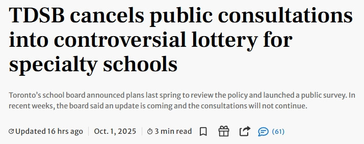 多伦多公校教育局(TDSB)近日突然取消了一项公众咨询,令备受争议的特色课程“抽签式”录取政策的前景扑朔迷离。教育局仅表示“未来数周将会有最新消息”。目前,家长和师生的意见两极分化:有人呼吁回归按成绩选拔,有人坚持公平优先,并担忧在缺乏透明度的情况下“关起门来”做决策。 ![]() ![]() 图源:X@tdsb 今年春季,TDSB曾宣布将审查“抽签式”录取政策,并启动公众调查问卷,原计划开放至11月底。但近几周,官网悄然更新称咨询“将不会按计划继续”,并在本周三关闭了调查问卷链接,也未透露后续细节。批评者希望这意味着抽签制将被取消,重新回归以成绩、才艺为基础的录取方式。 正反声音激烈对立 咨询取消引发两极反应:有人称这是“骗局”,有人则强调透明度和社区参与的重要性。一名母亲Logan Wilson表示,她对取消咨询“非常愤怒”:“如果家长连发言权都没有,那就不算公共教育。” 教育局发言人解释,自从省府在6月因财政问题接管了TDSB,并任命Rohit Gupta为监督员以来,他已收到来自家庭和社区的各种反馈,目前正审查录取方式,并将针对2026-2027学年公布一项决定。 抽签制缘起与争议 过去,进入这些热门特色课程(艺术、体育、理科、数理强化等)主要依据学生的成绩与才艺,包括面试、入学考试、作品集和个人陈述。但2022年5月,教育局重组流程,推出“学生兴趣项目政策”(P100),任何学生只要表达兴趣即可申请,当申请人数超额时,实行随机抽签,并优先考虑弱势群体。 这一举措旨在提高公平性,让更多代表性不足的学生有机会参与。然而,它引发了巨大争议:反对者认为抽签抹杀了努力和才华,降低标准,稀释课程,甚至导致部分学生因难以适应或缺乏热情而退学;支持者则认为它打破了系统性壁垒,让更多学生获得机会。 家长与受托人立场分裂 家长Safraw Hanif认为,取消咨询等于剥夺家长声音。她反对恢复成绩筛选,但也不接受抽签,主张扩展项目规模,让每个想要的孩子都有机会。 教育委员裴卫东(Weidong Pei)则直言抽签是“觉醒议程”的失败实验,称取消咨询是“好事”,并批评调查问卷根本没明确提到抽签,让家长“无从表达真正的意见”。 另一名教育委员Michelle Aarts则支持随机录取,担心撤下调查问卷显示过程缺乏透明度,并称“无论家长观点如何,原本有一个公开讨论并批准的咨询计划,家长原本期待能表达意见。” 学生教育委员Victor Jiang现为Marc Garneau高中的TOPS项目12年级学生,他强烈反对抽签。他表示自己是最后一届成绩筛选录取的学生,发现低年级抽签入学的学生准备不足,导致课堂水平不一,课程被“稀释”,课程的价值也随之下降。他认为唯一的解决方案就是恢复成绩制。 TDSB突然叫停咨询,让本已高度分裂的讨论再添不确定性。究竟会回归成绩筛选,还是维持抽签制,抑或扩展名额,目前仍有待省府监督员公布最终决定。 来源:加国无忧 编辑(Edit)     删除(Delete) |