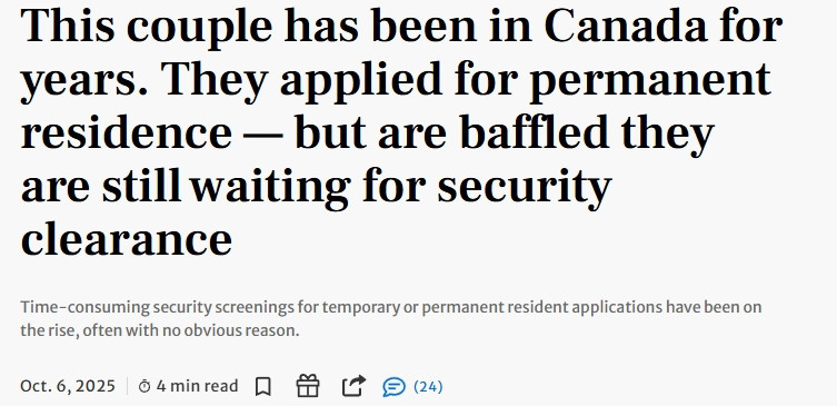 在加拿大等移民批文,如今成了一场“耐心马拉松”。 滑铁卢一对博士夫妻等了整整5年,身份迟迟未批;越来越多中国留学生、伊朗科研人员也被卡在所谓的“安全审查”中。审查越来越慢、越来越严,背后或与地缘政治有关,而申请者的生活,却被彻底按下了暂停键。 ![]() ![]() 图源:51记者拍摄 来自伊朗的Hesam Tajbakhsh和妻子Sara Najafi Alishah在加拿大持临时签证居住五年后,万万没想到移民局会突然把他们的永久居民申请转去进行“全面安全审查”,让他们大吃一惊。 这对夫妇表示,他们理解保护加拿大国家安全的必要性,但不明白为什么现在才被标记为“需审查对象”,更担心这项安全审查遥遥无期,导致他们的永久居民申请被无限搁置。 被卡原因不明、期限未定 Tajbakhsh于2020年来到加拿大,在达尔豪西大学攻读计算机科学博士学位。两年前毕业后,他一直在安省滑铁卢从事信息技术工作。Najafi Alishah是一名受过专业训练的医生,曾在医院做科研,目前在滑铁卢一家医疗诊所担任临床助理。 Najafi Alishah说:“我们的生活被按下暂停键。” 她已通过所有资格考试,但要想在加拿大进入住院医师培训、正式执业,必须先成为永久居民。 “他们既不告诉我们为什么要做安全审查,也不说要花多久时间。我们就这样被蒙在鼓里。” 过去两年,被渥太华移民部门标记为需进行安全审查的申请数量激增。永久居民申请被转介审查的年度数量已超过疫情前水平。 法律专家指出,他们发现越来越多申请人——无论申请永久或临时居留——被转介审查,即便他们从未服兵役、未在执法部门或外国政府工作,也不属于任何特定组织。通常,这些背景才会被视为国家安全、组织犯罪或人权风险的“警示”。 ![]() 图源:51记者拍摄 中国学生集体起诉加拿大移民局 上月就有报道称,数十名已获加拿大顶尖大学录取的中国研究生,因学习许可申请长期停滞,至今无法入境就读。他们指控加拿大移民、难民及公民部(IRCC)存在歧视,并已将案件提交联邦法院。 多伦多律师Vakkas Bilsin正在代理中国理工科研究生的诉讼,他表示:“整个决策过程毫无透明度。” 他要求法院命令渥太华加快长期滞留的留学签证安全审查。“人们不知道问题出在哪儿,也不知道移民局为何迟迟不批,他们感到无助和绝望。” 移民部负责进行入境资格初审,一旦发现疑点,就会将案件转交加拿大边境服务局(CBSA)、加拿大安全情报局(CSIS),甚至外国机构进行全面安全审查。 中国、伊朗留学生成“重点审查对象” 永居申请的年度转介数量从2020年的9,125件上升到去年的21,835件,超过疫情前20,570件的水平。2025年1月至7月已有9,140份申请被标记。2024年被转介最多的五个来源国分别是:中国4,250件;伊朗3,855件;印度1,620件;巴基斯坦1,175件;叙利亚1,136件。 临时居留申请的转介数量也在五年内从9,555件飙升至41,470件,2025年前7个月达18,425件,虽低于疫情前47,945件。去年转介最多的国家为:中国17,115件;伊朗7,205件;加沙/约旦河西岸4,505件;印度3,705件;巴基斯坦1,030件。 近年来,加拿大公共安全部报告称,中国、俄罗斯、印度和伊朗等国家的外国干涉活动频率和复杂程度都在上升。 此外,入籍申请和难民申请也须接受安全审查。公民申请转介数量从2019年的210,550件增至去年的296,125件;同期接受全面安全审查的难民申请也从45,031件暴增至145,425件。 ![]() 图源:CityNews Najafi Alishah夫妇于2023年10月入选永久居民申请,翌年4月案子被转入安全审查,他们表示自己并无任何可疑背景。 他们曾向国会议员和移民局寻求进度更新,但得到的答复是:安全审查没有固定时限,因为政府依赖第三方机构进行调查。 “这可能是一年、五年,甚至十年。” 31岁的Alishah说,“我有很多朋友来自其他国家,六个月就拿到永久居民。如果这不是歧视,那还能叫什么?” 他们目前持有过渡性工作许可,等待永久居民申请结果。和其他陷入“移民停滞”的人一样,他们担心渥太华正在推进的新法案会导致他们的申请被“以公共利益为由批量取消”。 在另一个案例中,Darooeizadeh于2017年到蒙特利尔攻读生物医学与电子工程硕士,目前在温哥华从事数据科学高级技术专员工作。她和丈夫于2023年7月获选永久居民申请,但因等待安全审查,档案被搁置至今。 35岁的Darooeizadeh说,“如果你要怀疑我,应该是在我第一次想来加拿大的时候。如果我真想伤害加拿大,早就做了。” 移民部拒绝透露用于筛查的具体风险指标或相关信息,仅表示所有申请人都得到公平对待。 “每份申请都会由移民官员独立审查,依据相同标准,与申请人来源国无关,必须符合资格和入境要求。”声明称,“保护加拿大人的安全始终是我们的首要任务。” 批评者认为,安全审查转介数量的激增部分与地缘政治有关,部分则是渥太华为减缓移民步伐而人为拖延。 移民律师Lev Abramovich表示,如果安全真是主要担忧,政府应加快审查速度才对。他指出,大多数被标记的申请最终都会通过,但延误让申请人长期停滞,生活受困。 去年,在21,835份被标记的永久居民申请中,8,505份通过审查,75份未通过;3,330份仍在处理中;9,785份显示为“已收到”;其余需补资料或结果“未定”。在41,720份被转介的临时居留申请中,14,685份通过,225份未通过,21,920份标注为“已收到”。 “如果真的担心安全,就应该给CBSA和CSIS提供更多资金。” 律师Abramovich说,他