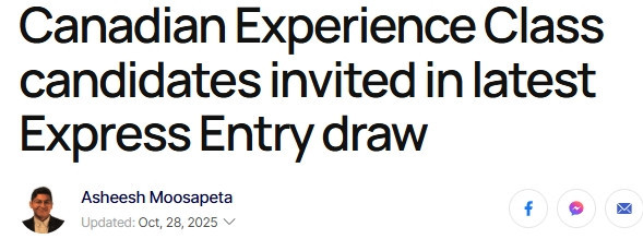 图源:canada.ca 本次抽签是今年第11次CEC 抽签,同时也是连续第四次CEC抽签维持1,000 份邀请的规模,且分数线维持在533 分左右。此前三次同系列抽签的最低分为 534 分。 自8月以来,IRCC每月都会举行一次CEC抽签,而这次则是自8月以来首次在同一个月内举行两次CEC抽签,上一次是在10月1日。 截至目前,10月共有6场快速通道抽签,其他5场分别是: • 10月27日:省提名项目(PNP)抽签; • 10月15日:医疗与社会服务类职业抽签; • 10月14日:另一场省提名项目(PNP)抽签; • 10月6日:法语类抽签; • 10月1日:CEC抽签。 截至目前,IRCC在2025年共通过快速通道系统发出了74,485份移民邀请(ITA)。 来源:加国无忧 编辑(Edit)     删除(Delete) |