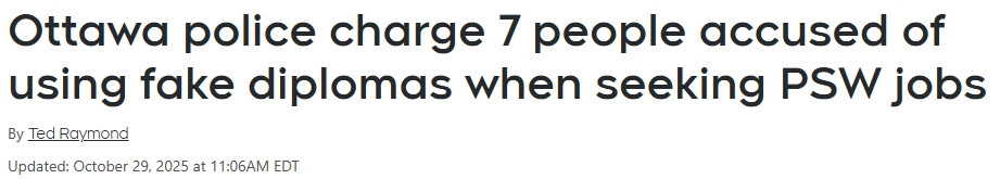 ![]()  安省七人拿假文凭申请当护工被抓!幸好公司识破