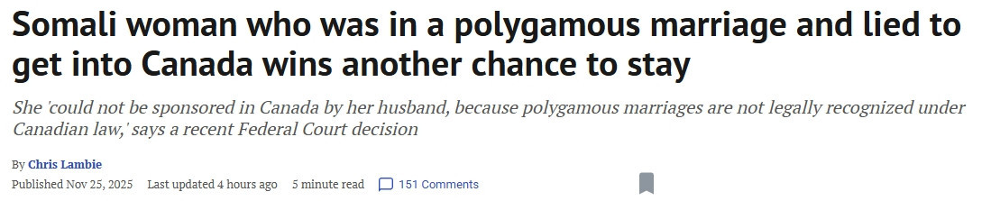 一名索马里籍女子因在申请加拿大难民身份时为自己和两个孩子提供虚假姓名和出生日期、并隐瞒自己与一名加籍索马里男子存在一夫多妻婚姻关系,被禁止入境加拿大五年。然而,她近日成功赢得再次留在加拿大的机会。