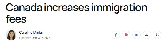 ![]()  注意!加拿大多项移民手续12月涨价了,部分申请人需补缴差额