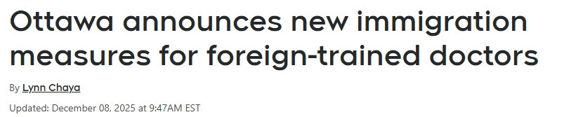 图源:51记者拍摄 移民部长Lena Metlege Diab在新闻发布会上表示:“我们已经亲眼看到急诊室承受的巨大压力,我们从等待家庭医生的家庭那里听到了焦虑的声音,也从被严重透支的一线医护人员身上切实感受到了这种紧张局势。” 她接着强调:“我们从患者、各省政府以及医疗界都收到了一个非常明确的信息:我们需要更多的人手加入一线。” 新的EE类别 IRCC推出的这一全新Express Entry类别,将面向在过去三年内,至少拥有一年加拿大相关职业工作经验的外籍医生。 要符合该类别的申请资格,这些医生必须: • 目前已经持有临时身份在加拿大境内; • 正在为患者提供医疗服务; • 实际上正在为加拿大医疗系统提供支持。 截至目前,IRCC尚未公布该“医生专属类别”将具体涵盖哪些职业。 在该新类别下的首轮邀请预计将于2026年初启动。 目前,IRCC现有的医疗类Express Entry类别已经涵盖医生,同时也包括大量医疗相关职业,例如护士、牙医、验光师等。 值得注意的是,现有的医疗类别并不要求申请人必须拥有加拿大境内的工作经验或居留身份,而此次新公布的“医生专属类别”则明确设定了必须有加拿大工作经历的要求。 省提名特别预留永久居民名额 加拿大联邦政府还将额外为各省和地区专门预留5,000个永久居民 联 邦入境名额,用于提名已经获得执业资格并持有雇主工作邀请的医生。 这5,000个名额不占用各省原本的年度省提名计划(PNP)配额;意味着各省移民部门将能够大幅提升对海外医生的提名数量,从而加快他们获得永久居民身份的速度。 所谓“入境名额(admissions spaces)”,是在加拿大《移民年度配额计划》中明确列出的指标,代表每年实际入境并成为新永久居民的人数。这些名额覆盖所有移民类别,包括Express Entry、省提名计划(PNP)等,并按不同项目进行细分。 目前,联邦政府尚未明确说明这次为医生新增的5,000个名额,将从哪个具体移民配额中调配出来。 省提名医生工签14天加急处理 凡是获得省政府提名的医生,其工作许可将享受最快14天加急审理,使他们可以在永久居民申请审批期间,提前进入工作岗位。 这一新政策,大幅压缩了加拿大境内工签申请的处理时间。目前,境内工签从递交到获批通常需要数月时间,而新政策将实现几何级别的提速。