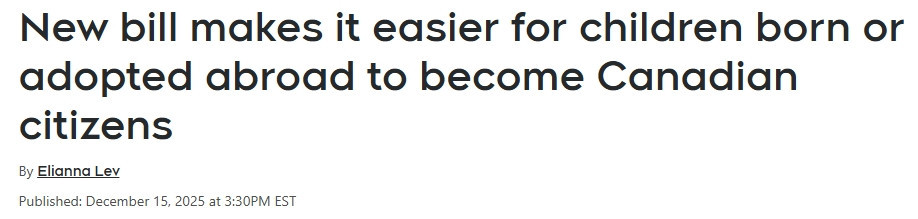 加拿大政府正在推出新的法律措施,使收养子女的家庭更容易将加拿大国籍传承给下一代。 周一,被称为《2025年修订〈公民法〉法案》的C-3号法案正式生效。