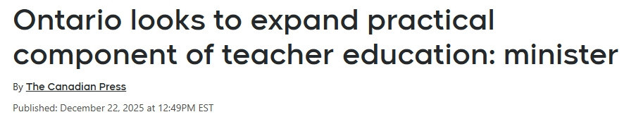 安省预计将于明年公布新的教师认证方式,并将增加更大比例的实际教学环节。 安省教育厅长Paul Calandra在接受加通社年终专访时表示,他正在考虑缩短教师学院(teachers’ college)的整体学制,同时也在审视教师的供需数据。