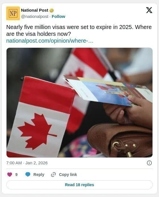 在去年2025年到来之时,加拿大联邦政府数据显示,未来12个月内将有约490万份签证和移民许可陆续到期。围绕这些签证持有人是否会按期离境,反对党保守党持续向自由党政府施压,质疑政府缺乏有效应对方案。