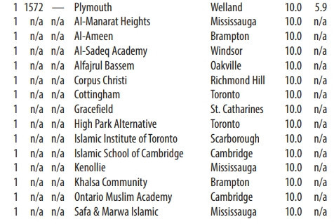 图源:51记者拍摄 全省共有31所学校以满分10分并列第一,其中多伦多(包括士嘉堡和北约克)共10所,密西沙加4所,于人村1所,列治文山1所:
