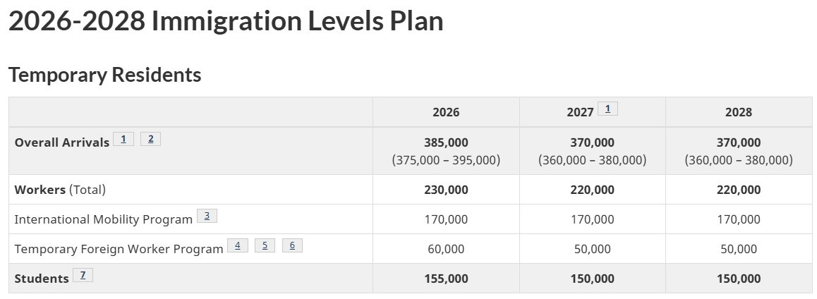 图源:canada.ca 分析指出,临时居民数量的大幅回落,是加拿大近期人口增速明显放缓、甚至阶段性下降的关键原因之一,也反映出联邦政府正在通过政策调整,主动为过去几年的高强度人口增长“踩刹车”。 来源:加国无忧 编辑(Edit)     删除(Delete) |