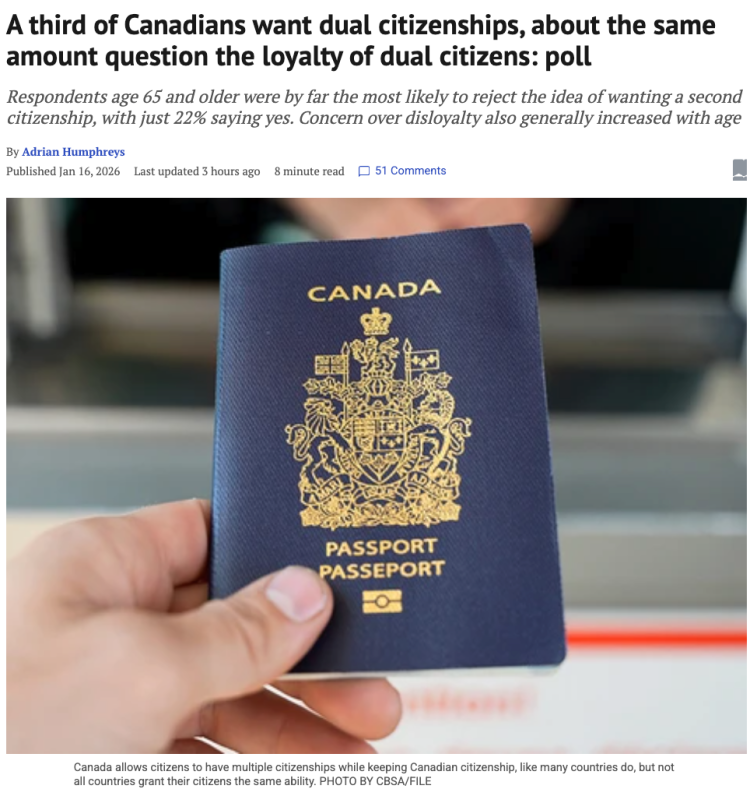 一项新的全国民意调查显示,超过三分之一的加拿大人希望拥有不止一个国家的国籍,其中46%华裔受访者对双重国籍感兴趣,比印度人高2个百分点。 根据加拿大国家邮报的报道,上个月由 Leger Marketing 为加拿大研究协会进行的民意调查显示,人们对加拿大双重国籍问题以及加拿大国籍的相对价值有时持有矛盾和不同的观点。 在加拿大所有受访者中,37%的人表示他们希望拥有双重国籍,而47%的人表示他们对此不感兴趣,16%的人没有作答。 加拿大允许公民拥有多重国籍,同时保留加拿大国籍,这与许多国家的做法类似,并非所有国家都给予公民同样的自由。例如,印度不允许其公民在成为其他国家公民后保留本国国籍。而美国则允许这样做。 上个月,美国共和党参议员伯尼莫雷诺(Bernie Moreno)提出一项旨在取消双重国籍的法案,并宣称“如果你想成为美国人,要么只是美国人,要么什么都不是”,这引发了关于双重国籍的激烈辩论。该法案面临着漫长的立法程序和公众的强烈反对。 在加拿大,此类辩论通常仅限于居住在海外的双重国籍人士在危机期间向加拿大寻求高额援助的情况。