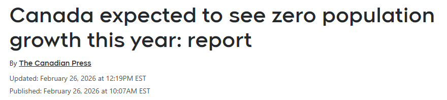 加拿大议会预算官(PBO)预测,由于最新联邦《移民水平计划》大幅削减非永久居民(临时居民)名额,加拿大2026年的人口增长率将维持在零增长水平。这将是加拿大连续第二年人口零增长。此前几年人口增长显著高于平均水平,包括2022年和2023年两次创纪录增长。