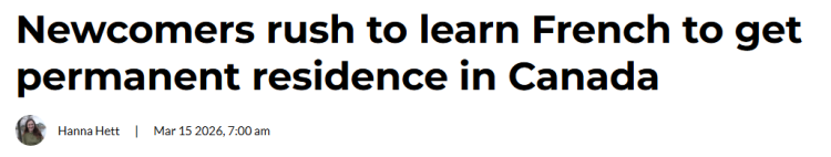 越来越多的新移民为了提高获得永久居留权(PR)的机会,选择学习法语。在加拿大,法语正在成为留在这里的“秘密武器”。