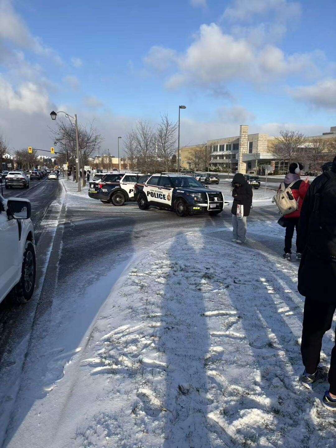 图源:citynews 警方称,这通电话于早上7点44分左右打来,显示发自洛杉矶,报警内容称万锦Bur Oak Avenue和Kennedy Road附近一所学校正在发生紧急事件。 警方迅速赶到现场,疏散并检查整座校舍,最终确认不存在公共安全威胁。 多名网友在社交媒体上表示,涉事学校为特鲁多高中(Pierre Elliott Trudeau High School)。目前该信息尚未由警方正式点名确认,但已获得多方现场学生及家长的佐证。