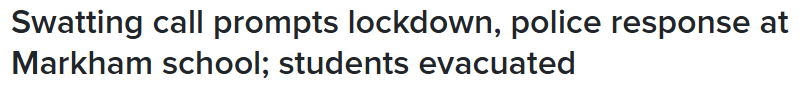 约克区警方表示,周二(4月7日)早晨,万锦一所学校突遭封锁,警方赶到现场后证实,这是一起"恶作剧报警"事件,即有人恶意虚报紧急情况,导致警方大规模出动。